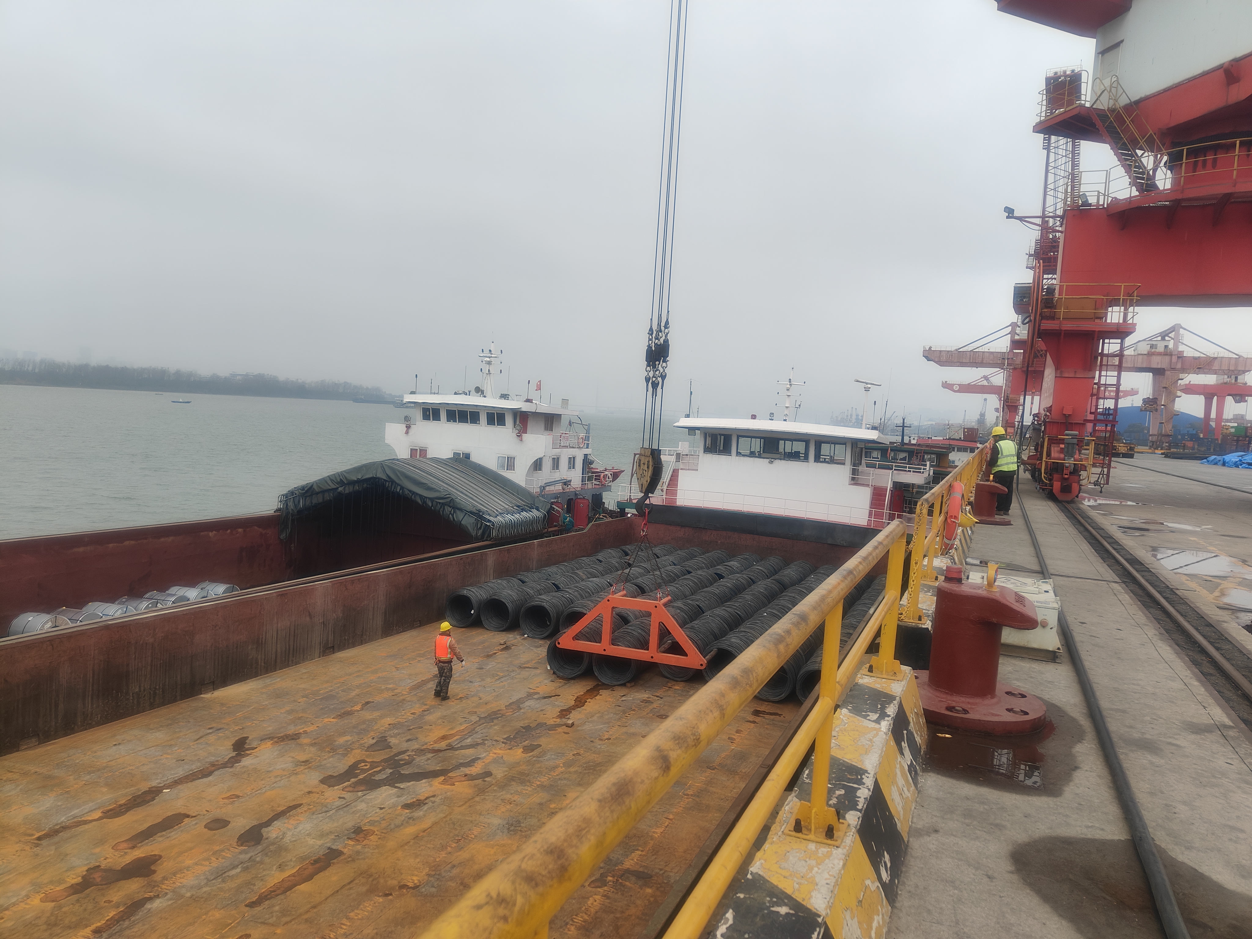 | 11月20日,湖南省城陵磯港口集團(tuán)長沙新港公司1號吊現(xiàn)場,裝卸人員正在利用四齒吊具進(jìn)行盤螺裝卸作業(yè),僅需2名裝卸人員用時3分鐘時間就將盤螺裝卸至指定位置。而這項(xiàng)工作在此之前需4名裝卸工人來完成。  據(jù)悉,以前各班組吊裝卸盤螺時大都采用鋼絲繩進(jìn)行吊裝,需要的裝卸人員多、勞動強(qiáng)度大,用于吊裝盤螺的鋼絲繩損耗率較高。 為解決這個問題,長沙新港公司于11月1日定制了盤螺四齒吊具,生產(chǎn)、設(shè)備班組帶領(lǐng)技術(shù)骨干開展革新攻關(guān),花費(fèi)近一周時間先對存放在我司貨場各個廠家生產(chǎn)的盤螺、線材進(jìn)行精確測量,再對接定制廠家,畫出吊具圖紙。通過不斷磨合、調(diào)試,目前該吊具已滿足我司絕大部分盤螺、線材裝卸船需求。隨著該吊具的全面投入使用,使作業(yè)面裝卸人員得到優(yōu)化、作業(yè)人員勞動強(qiáng)度減少的同時還降低了鋼絲繩的損耗,進(jìn)一步保障了員工作業(yè)安全。后期通過不斷融合,作業(yè)效率將得到進(jìn)一步改善。 據(jù)了解,今年10月9日,長沙新港公司自主改進(jìn)的元明粉噸袋吊具開始投入使用。該吊具結(jié)合港口可持續(xù)發(fā)展理念,經(jīng)過不斷磨合改進(jìn),噸袋吊裝由原一次僅能吊裝4袋,到現(xiàn)如今可一次吊裝10袋,且該吊具能自動取勾,使噸袋作業(yè)效率提升了50%,作業(yè)人員減少了25%。大大改善了以往噸袋作業(yè)貨物易破損的缺點(diǎn),確保了貨物、人員、機(jī)械的合理優(yōu)化配置。 長沙新港公司始終堅持從實(shí)際出發(fā),以工藝創(chuàng)新為引領(lǐng),找準(zhǔn)發(fā)展切入點(diǎn)和著力點(diǎn),不斷優(yōu)化作業(yè)流程,因地制宜發(fā)展港口新質(zhì)生產(chǎn)力,加快創(chuàng)新成果與現(xiàn)實(shí)生產(chǎn)力轉(zhuǎn)化,以技術(shù)創(chuàng)新推動港口向智能化、綠色化轉(zhuǎn)型升級,進(jìn)一步提升人機(jī)工效,推動港口可持續(xù)發(fā)展! |