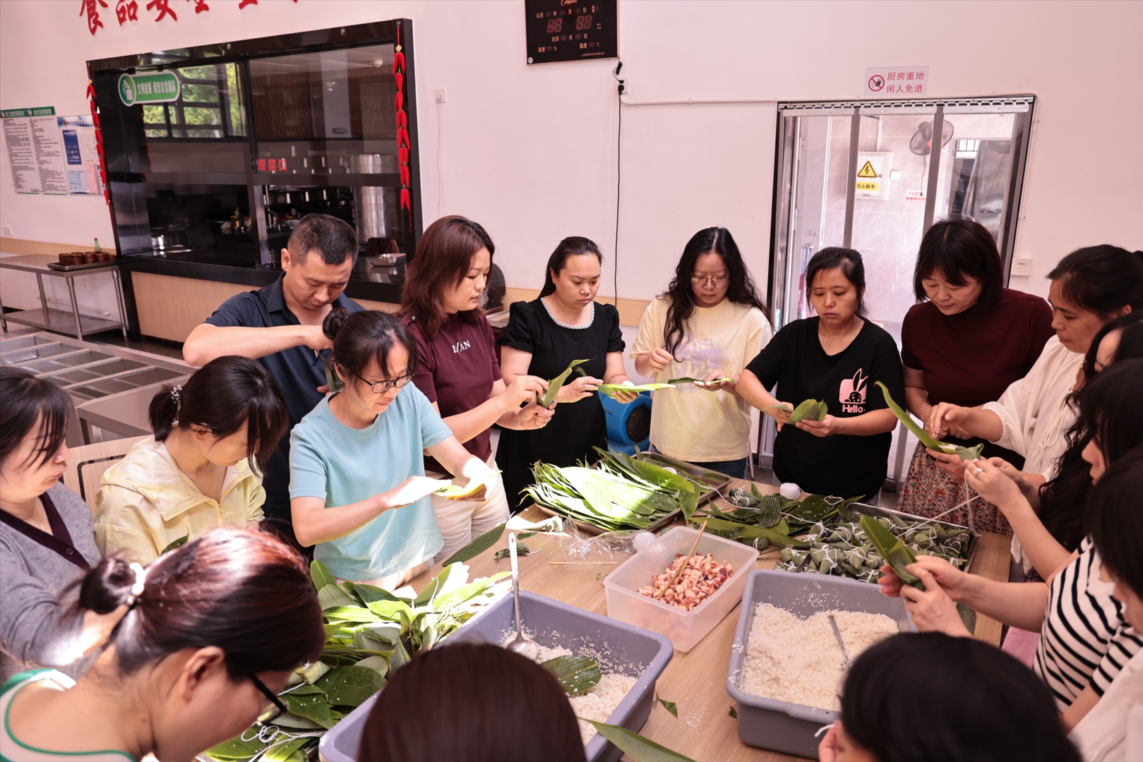 “粽葉要卷成漏斗狀,米別裝太滿,線要纏緊才不會漏!”5月30日,城陵磯港口集團長沙新港食堂里粽葉飄香、笑聲朗朗,一場“端午粽香情,共筑企業(yè)夢”包粽子主題活動正溫馨上演。公司工會以傳統(tǒng)習俗為紐帶,為員工們搭起“文化橋”“連心橋”。 活動現(xiàn)場,“包粽達人”主動當起“小老師”,手把手教新手折葉、填米、捆扎——有的粽葉卷得歪歪扭扭,有的糯米漏得滿桌都是,卻換來一陣又一陣的歡笑。不一會兒,三角粽、四角粽、“迷你粽”在桌上排起隊,裹著蜜棗的甜、蛋黃的香,更裹著同事間的熱絡情誼。 午餐時分,員工們圍坐一起,捧著自己包的“專屬粽子”,你嘗我的蜜棗粽,我品你的咸蛋黃粽,飯桌上的討論比包粽時更熱鬧。“平時各忙各的,今天聽霞姐講老家賽龍舟的習俗,凌哥教我綁線小竅門,這粽子吃著都更香了!”設備部小許舉著粽子笑著說。 從“指尖技藝”到“舌尖美味”,這場活動不僅讓員工在動手體驗中感受端午“文化味”,更以“包粽”為媒,打破部門壁壘,讓跨崗位交流更自然。 工會負責人表示,我們希望通過傳統(tǒng)節(jié)日活動,把“家文化”融進日常,讓員工在企業(yè)里找到歸屬感和幸福感。今后,我們將在集團的指導和支持下,舉辦更多活動,豐富員工生活,營造更加和諧、溫馨的企業(yè)文化氛圍。
